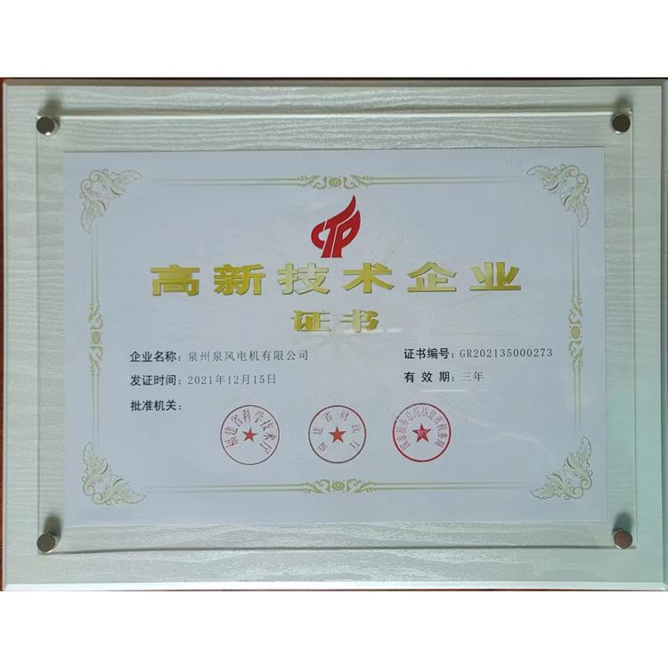 ??公司以建立現(xiàn)代化企業(yè)為目標,堅持“科技是首要生產(chǎn)力”,于2000年通過了ISO9001:2000國際質量體系認證、產(chǎn)品已獲得CCC強制性認證;美國UL、加拿大CUL、歐盟CE等安全認證。并獲得國家微電機產(chǎn)品檢測中心授予“行業(yè)監(jiān)督抽查合格單位”及“九五質量水平優(yōu)秀單位”,“泉風”牌風機被中國技術協(xié)會確定為 “風機行業(yè)質量十佳放心品牌”、“中國軸流風機十佳名優(yōu)品牌”。“泉風”牌產(chǎn)品已通過福建省新產(chǎn)品鑒定并獲得“福建省科技成果獎”、“省級優(yōu)秀新產(chǎn)品獎”、“省級科技進步獎”。 2006年度被福建省確認為“福建省高新技術企業(yè)”、“科技進步先進企業(yè)、“福建知名科技企業(yè)”。 “泉風”牌商標被評為“泉州市知名商標”。 2009年“泉風”牌商標被評為“福建省著名商標”。